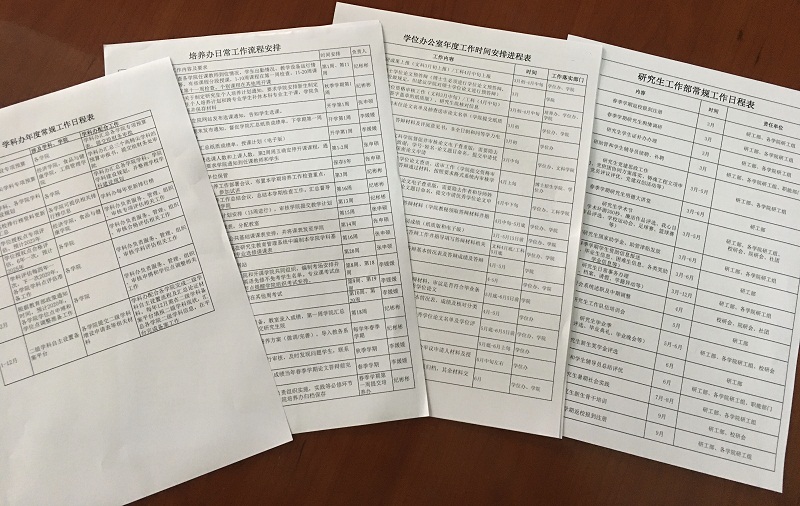 研究生党支部制定主题教育“一张学习方案计划表”,有计划、有主题、有组织、多形式地开展学习活动,通过组织党员自学、集体学习、专题教育、专题检视问题和调研交流等形式,将主题教育学习活动系统化、规范化,各位党员心中有任务,学习有目的。党支部根据《习近平关于“不忘初心、牢记使命”论述摘编》和《习近平新时代中国特色社会主义思想学习纲要》提炼10个主题教育关键词,围绕不同关键词开展学习活动,坚持将主题教育与解决实际问题相结合,读原著、悟原理。研究生党支部要求研究生院每个科室制定一张“常规工作推进表”,将年度常规工作及节点列表发至各学院,方便学院使用的同时,也做到常规工作管理规范化、精细化。