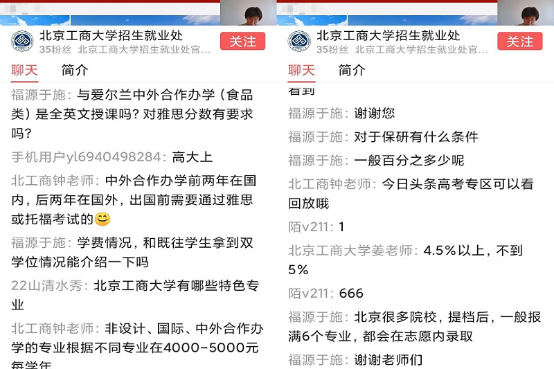 直播系列活动打破了空间地域限制,方便快捷地在全国范围内开展学校招生政策与专业特色的宣传解读,同时能够在线为广大考生及家长答疑解惑,实现了足不出户就能在第一时间获取准确的招生资讯。广大考生及家长可以通过“今日头条”或“西瓜视频”进入“2020高考百校直播”专区或关注色情片招生就业处进行在线观看。据悉,“今日头条”在线招生宣传直播系列活动共计20场,横跨27天进行分省直播,望广大考生及家长积极关注。祝愿各位考生金榜题名,期待金秋与你在北工商相聚。