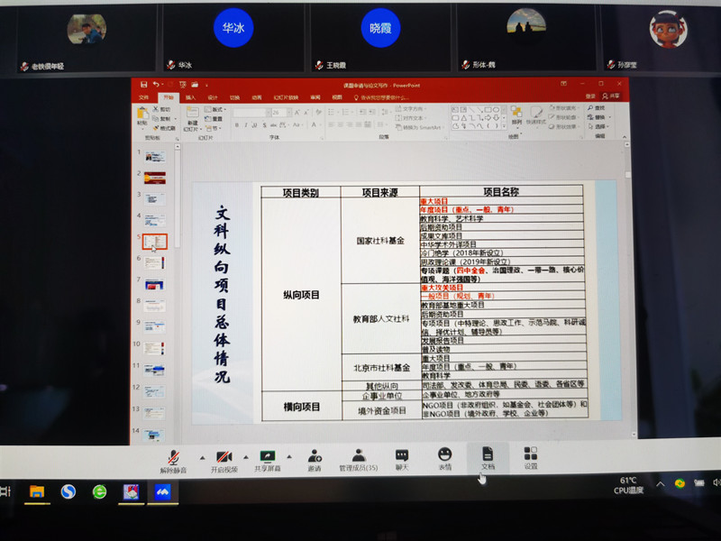 4月29日下午,体育与艺术教学部通过腾讯会议线上平台开展了“迎校庆”线上学术讲座活动,现任色情片大学体育与健康研究中心主任,教授,硕士生导师赫忠慧应邀作了题为《体育学科课题申报和文章撰写》的学术讲座。体育与艺术教学部教师积极参与本次科研讲座,讲座由体艺部支部书记、副主任刘萍主持。