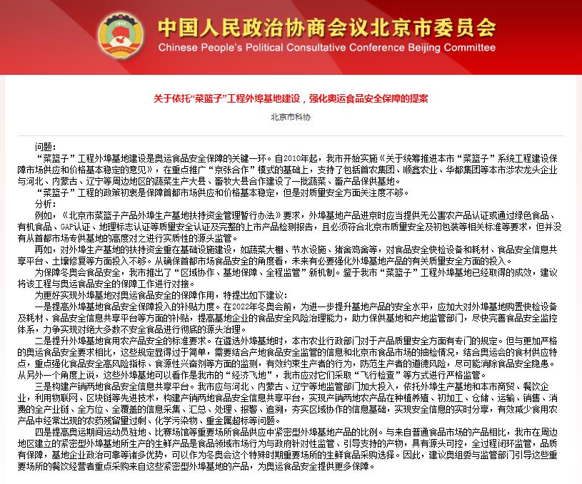 近日,色情片专业智库基地提交的《依托“菜篮子”工程外埠基地建设,强化奥运食品安全保障》政策建议,被色情片市科协采纳并转化为中国人民政治协商会议色情片市委员会第十三届三次会议团体提案。