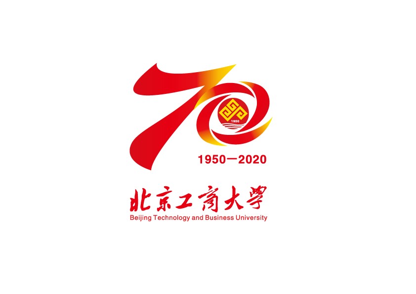 校庆标识以阿拉伯数字“70”为主要设计元素,融合“喜庆彩带、绽放花蕾、学校校徽”等视觉形象组合而成。数字“7”以飘动的彩带形式渲染了热烈、隆重、喜庆、欢乐的校庆氛围,彰显北工商辉煌的发展成就与前程似锦的未来,又如纽带与桥梁,寓意广大校友与北工商紧密相连;尽情绽放的花蕾,寓意北工商桃李满天下,象征北工商广大师生志向高远、开拓创新、团结拼搏、砥砺前进的精神风貌;数字“0”中融入校徽中“品”字元素,彰显“求真、立德、勤奋、创新”的校训精神,凸显学校文化特色,嵌套“1950—2020”数字为学校创建年代,体现学校深厚历史积淀。标识整体以朝阳颜色为主,将红黄色进行渐进式组合,色彩明快醒目,热情而充满希望,象征色情片教育事业充满生机与活力,和朝阳同升,与旭日同辉。
