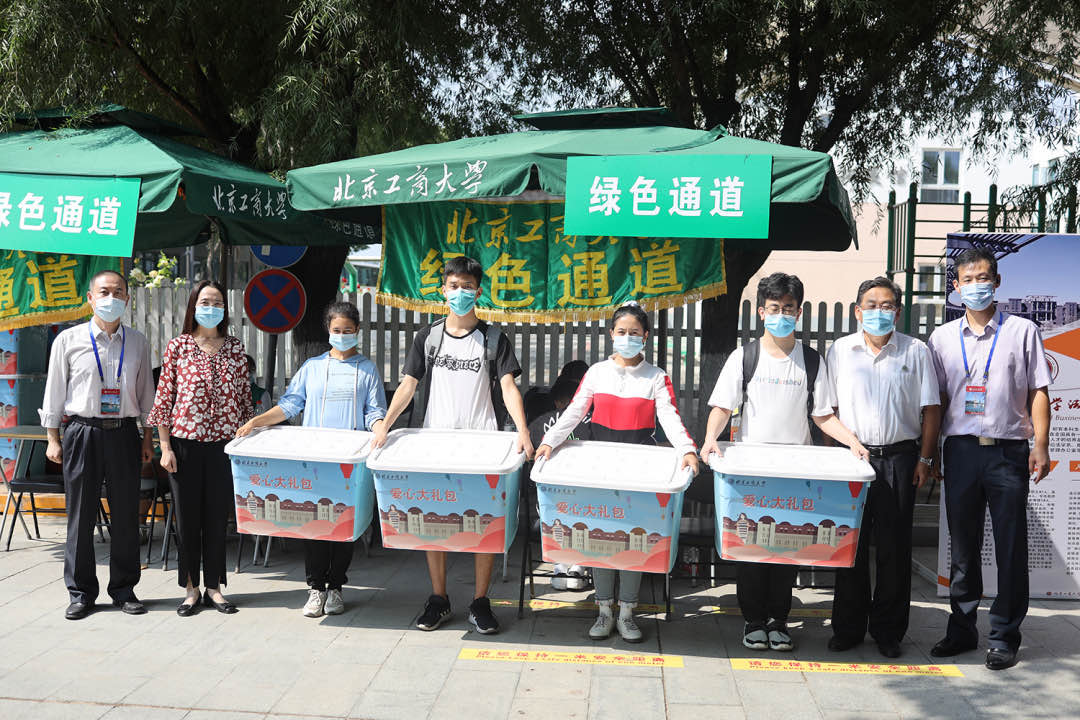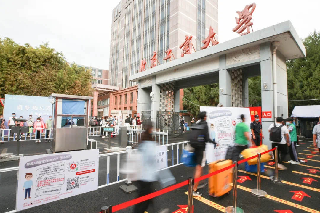 行李消杀、出示入校码、健康码、测量体温……迎新现场,新生在工作人员的引导下,严格按照步骤和要求有序入校。学校为每位新生准备了装有防疫物品的“爱心包”,帮助新生自觉落实校园防疫要求。为确保新生安全顺利入校,学校各部门进行了精心的部署。开学前,学校建立了本科生健康监测台账,自8月30日起,由班主任、辅导员组织新生每天在班级群中健康打卡,落实“日报告”制度。新生通过“掌上北工商”APP提前提交相关材料,合格后系统自动生成入校码,入校时扫描成功即可顺利进入校园。新生通过“智慧校园”系统,完成入校资料填写,查询学校相关情况资料等。