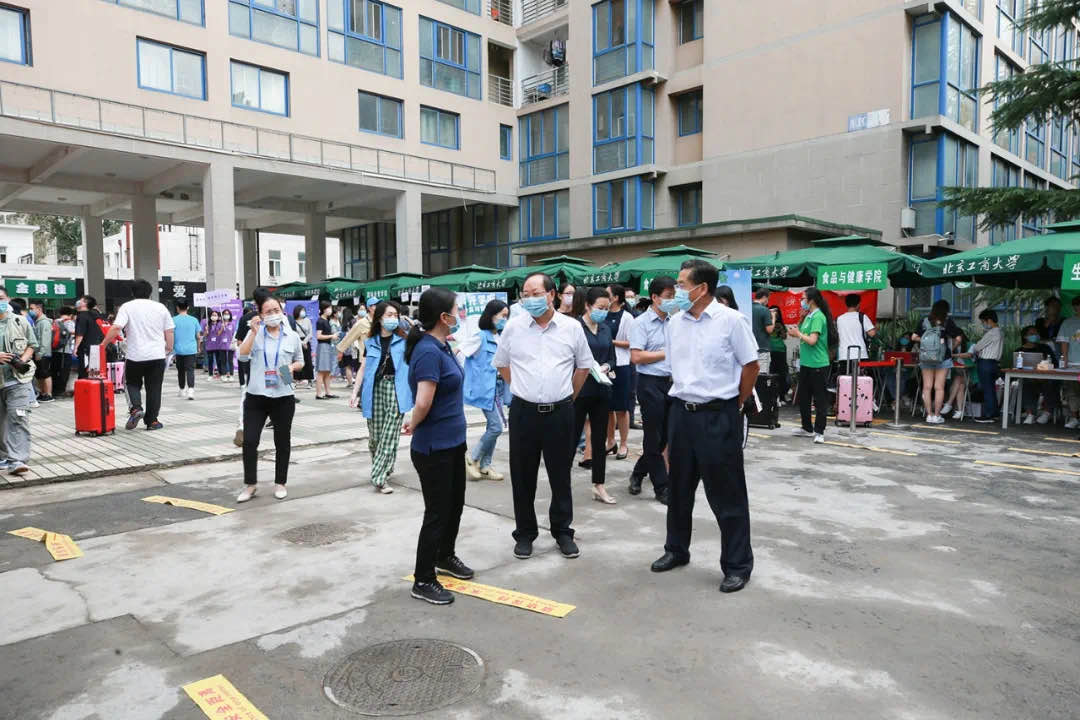 党委宣传部在新浪微博、抖音平台同步图片、视频直播新生入校情况,全面报道入校流程,方便学生家长实时查看,让家长放心。目前抖音浏览量达97761次。教务处、招生就业处为新生提供信息咨询、信息表打印等服务。保卫处增加安保力量,重点对学校周边送学生车辆疏导,维持好校门附近交通秩序,应急指挥中心24小时监控重点区域,加大了重点区域保安值巡力度。校园建设处、公共事务处在开学前加紧完成施工改造,给学生提供了整洁的校园环境。信息网络中心更新了新生报到系统,学生可以直接通过“掌上北工商APP”提交材料。为新生制作校园一卡通,并为“智慧校园”提供网络支持。