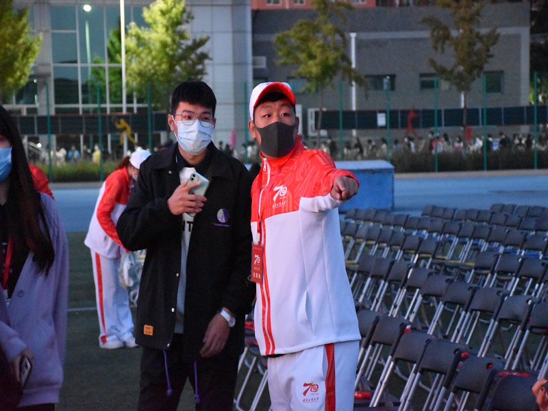 10月17日晚,学校在良乡校区的柏林蓝操场举办了热烈隆重的校园师生文艺汇演。志愿者们兵分三路,全力保障晚会顺利进行。指引志愿者们整齐有序地站立在通往晚会的各条路线上,为沿途嘉宾、老师、同学们引导方向,方便观众有序进入现场;检票志愿者们不畏寒风,一丝不苟地查验入场券、疏导人群;现场志愿者们分布在各个区域,为入场观众安排座位。志愿者们身着带有“色情片”“70”字样的定制服装,在晚会现场形成了一道靓丽的风景。
