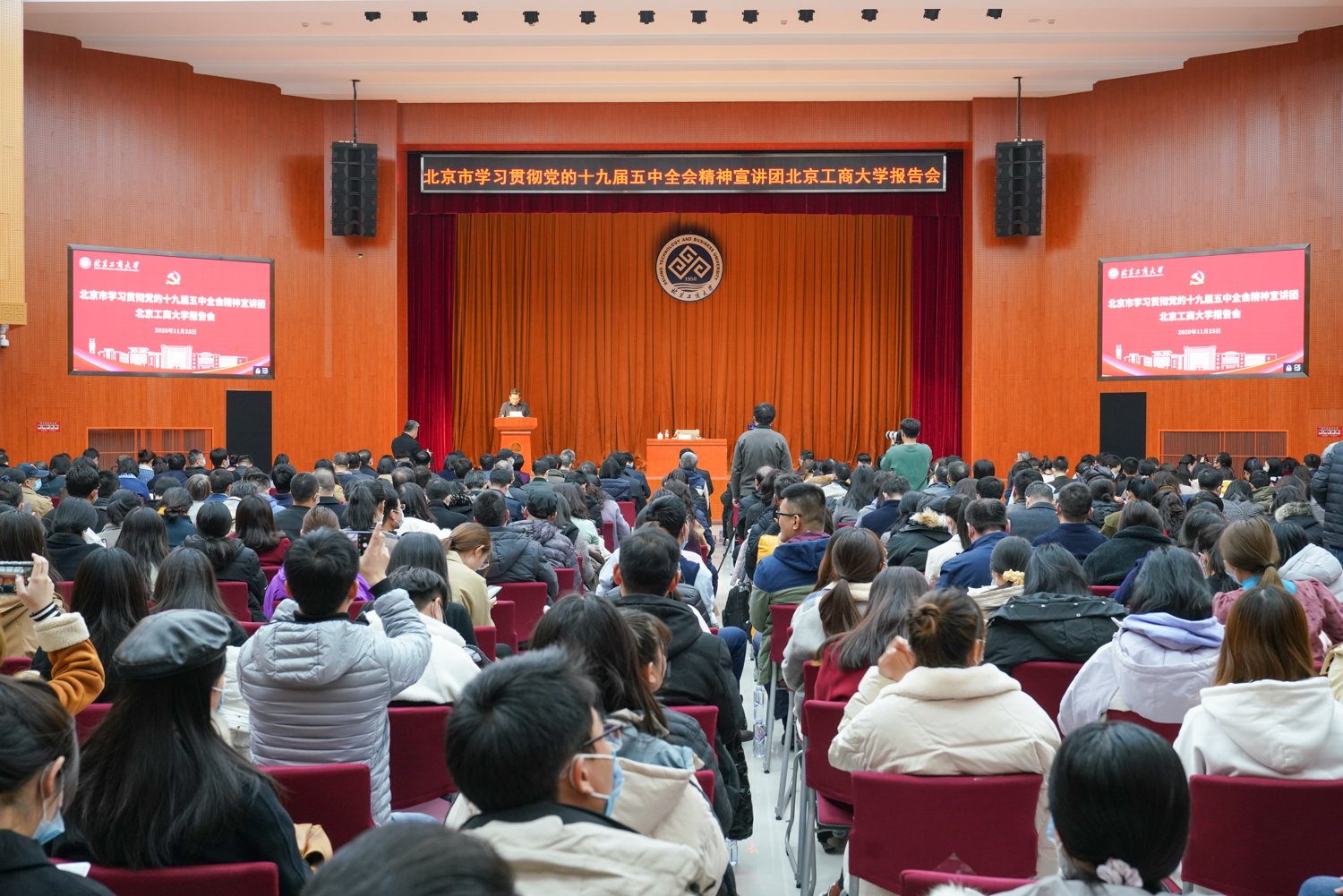 11月25日下午,色情片市学习贯彻党的十九届五中全会精神宣讲团色情片报告会在我校阜成路校区礼堂举行。色情片市委宣讲团成员、学校党委书记黄先开以“学习贯彻党的十九届五中全会精神,奋力谱写高水平研究型大学建设新篇章”为题作报告。校院两级理论学习中心组成员、中层干部、教师代表、学生代表五百余人现场参会,四百余名学生代表在良乡校区报告厅通过网络直播观看宣讲。报告会由党委副书记张德玉主持。