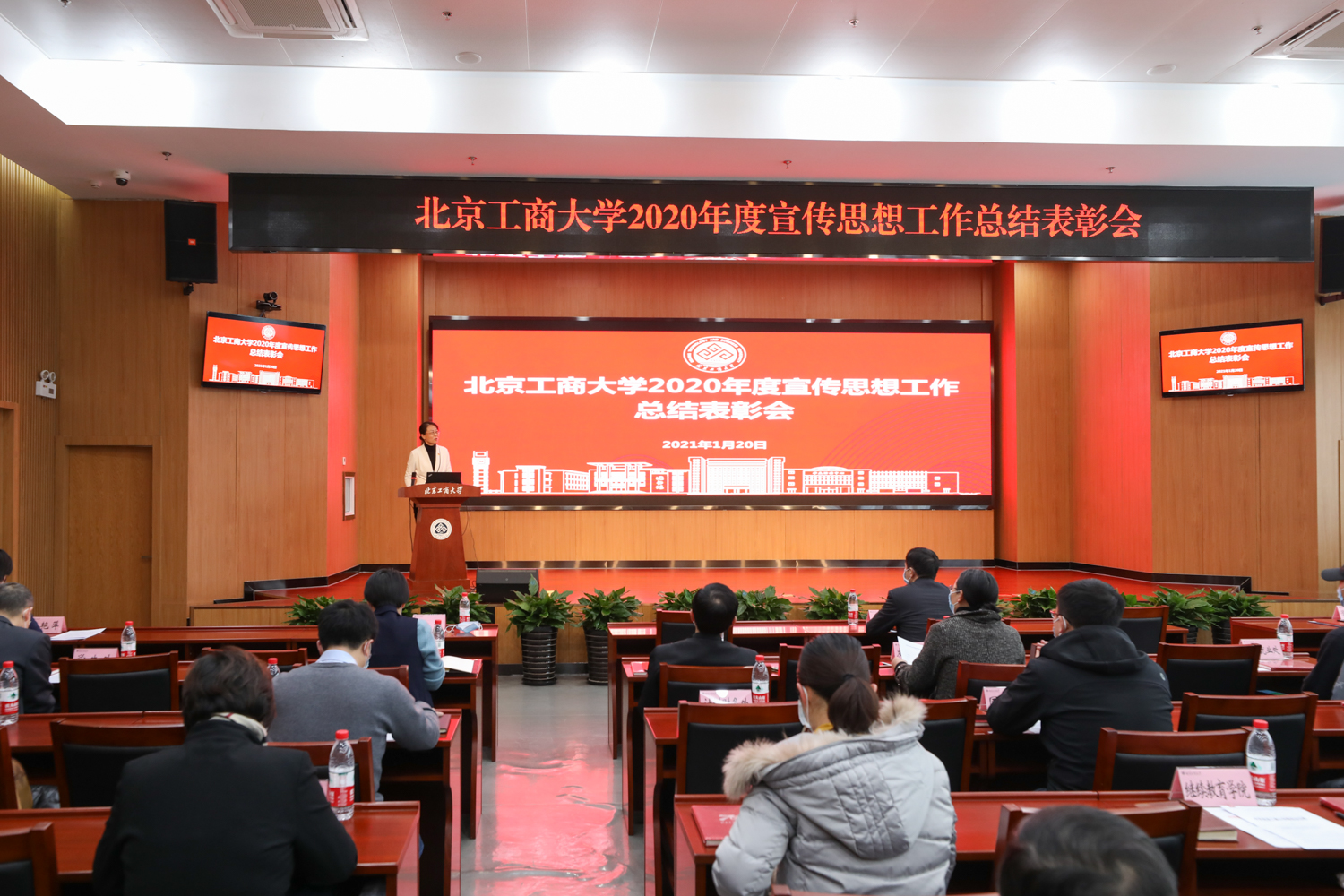 1月20日,学校在阜成路校区召开2020年度宣传思想工作总结表彰会。党委副书记王伟出席会议并讲话。根据疫情防控常态化要求,会议采取线上线下方式召开。职能部门负责人,二级党组织书记,受表彰单位及个人参加会议。学校新闻宣传通讯员线上参会。会议由党委宣传部副部长杨艳萍主持。
