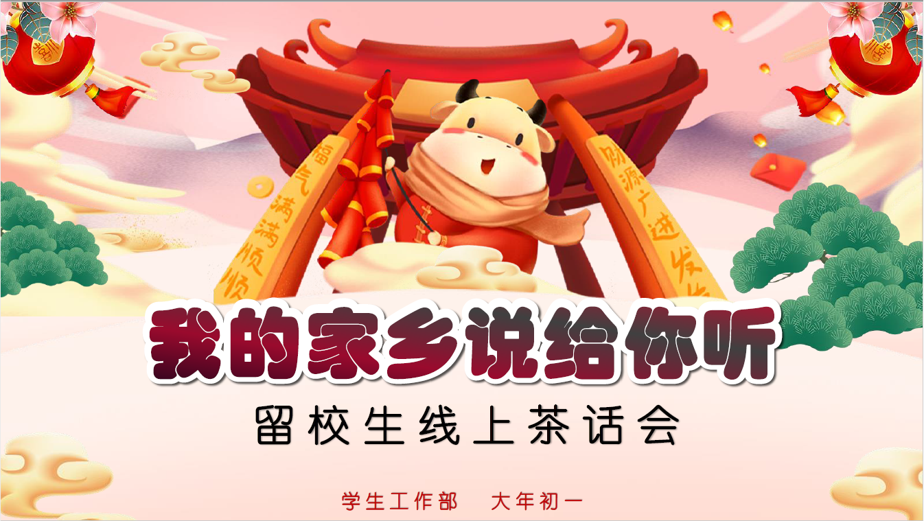 2月12日上午,学生处组织留校本科学生开展主题为“我的家乡说给你听”线上茶话会。学生处副处长盖晓庆、资助中心老师、相关学院辅导员及全体留校本科生参加此次会议。