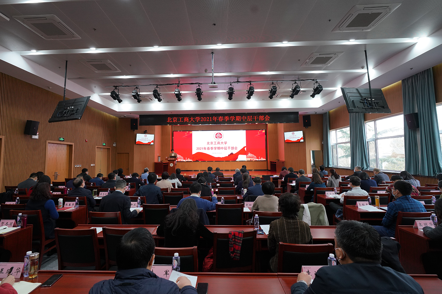 2月26日,学校在阜成路校区召开2021年第一次中层干部会。党委副书记、校长孙宝国作2021年工作部署,同时对新学期重点工作进行强调部署。校领导就分管工作作报告。党委书记黄先开主持会议并发表总结讲话。根据疫情防控常态化要求,此次线下会议设主会场和分会场。全体中层干部参加会议。