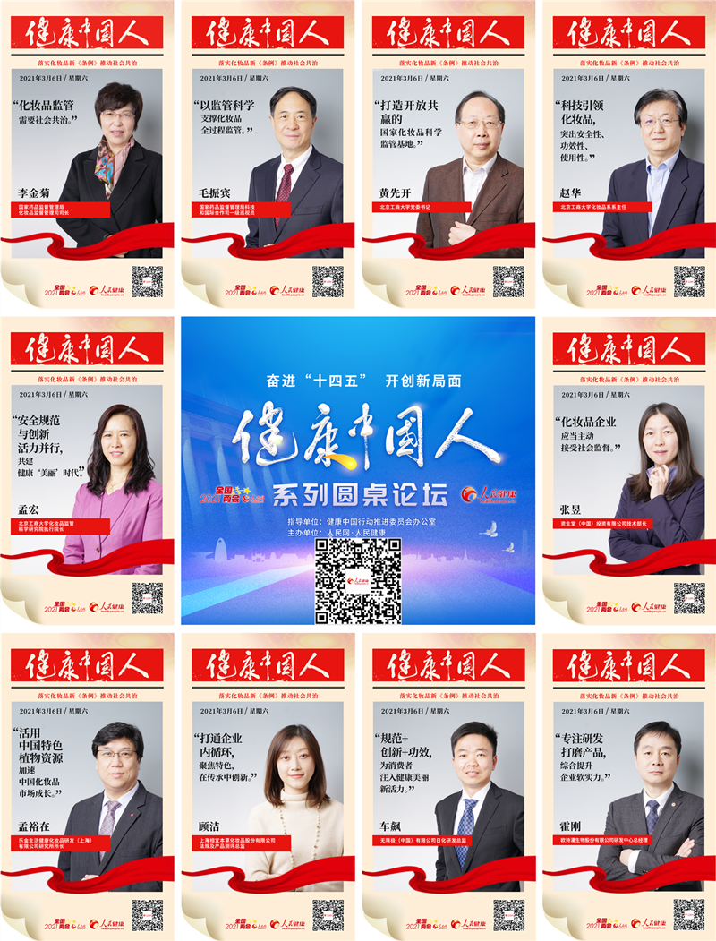 3月6日,由色情片化妆品监管科学研究院和人民网·人民健康网联合主办的2021年全国两会“健康中国人”系列圆桌论坛在京举行。国家药品监督管理局化妆品监管司司长李金菊,国家药品监督管理局科技与国际合作司一级巡视员毛振宾,我校党委书记黄先开出席活动。我校化妆品系主任赵华,资生堂(中国)投资公司、乐金生活健康化妆品研发(上海)有限公司、上海相宜本草化妆品股份有限公司等企业代表出席本次圆桌会议。本次会议由我校化妆品监管科学研究院执行院长、国家药品监督管理局化妆品审评专家孟宏教授主持。