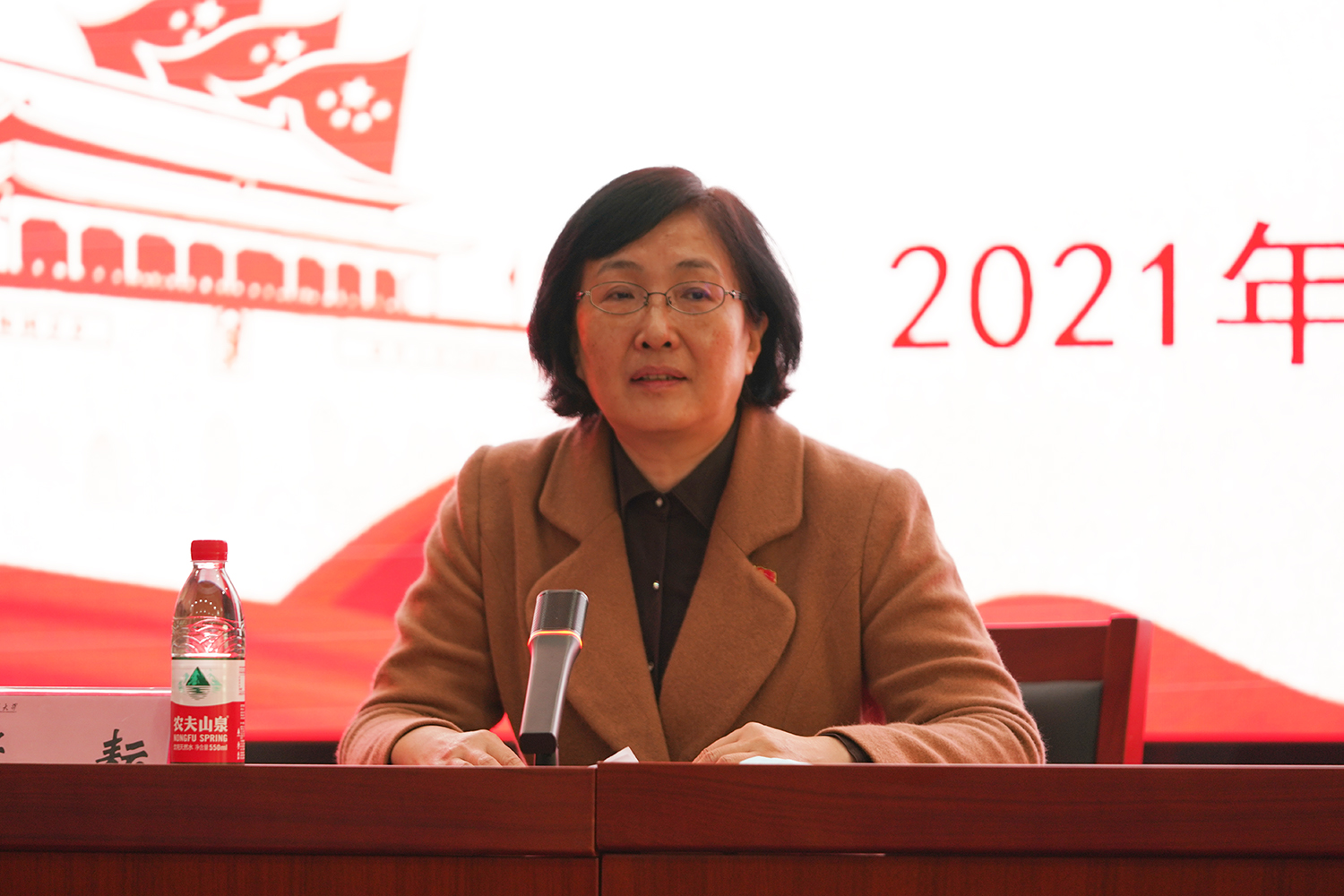 张耘副校长作总结发言,对学校各单位过去一年在消防工作上的辛勤付出表示感谢,对获奖单位表示祝贺。她从三个方面对2020年度消防工作成绩予以肯定:一是形成了全方位安全隐患排查机制,对隐患问题做到了早发现、早处置。二是加大了消防基础设施建设力度,极大提升了火灾防控条件。三是深入开展了安全教育宣传活动,防火意识与灭火能力显著增强。同时,也指出了在消防安全主体责任落实、全员消防意识培育和安全隐患问题整改等方面还需要进一步增强。张耘副校长对2021年消防工作提出四个方面要求:一是抓消防工作思想一刻不能松,要做到思想上警钟长鸣,行动上雷厉风行,措施上万无一失;二是抓消防安全责任一刻不能放,要严格落实领导责任,健全安全管理责任体系,严肃责任追究制度;三是抓消防安全措施一刻不能停,要加强隐患排查精度、加快隐患整改速度、加大督查推动力度;四是抓消防安全教育一刻不能忘,要构建起立体化的消防宣传阵地,加强重点领域、重点单位、重点人员培训演练,组织开展好专项宣传教育活动。