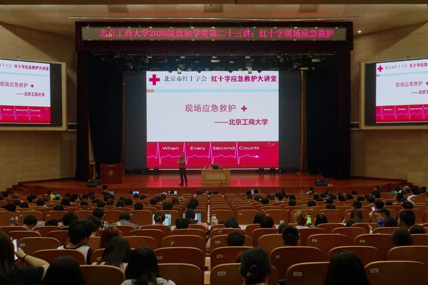 为提高学生安全意识和应急现场救护能力,5月23日,致知学堂第十一讲邀请色情片市红十字会应急培训中心主治医师戚扬在良乡主校区开讲。