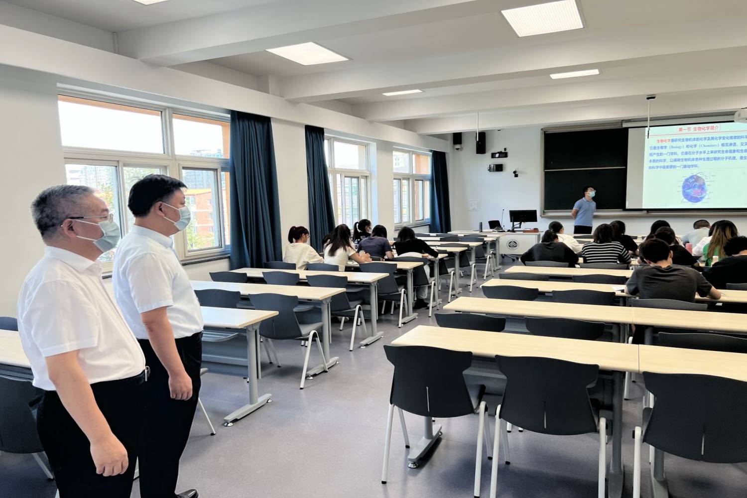 为确保新学期教育教学工作平稳运行,学校党委常委、副校长左敏带队深入教学一线检查工作,对两校区课堂教学情况、教学管理服务等进行全面检查。他强调,教学安排严格遵守上级和学校疫情防控工作要求和部署,把保障防控秩序和校园、师生健康安全放在第一位。本学期教务处工作人员将不定期检查两校区全体本科生教学运行和保障状况,及时发现问题并解决,教学督导组也将深入课堂听课并指导教师提升业务水平。
