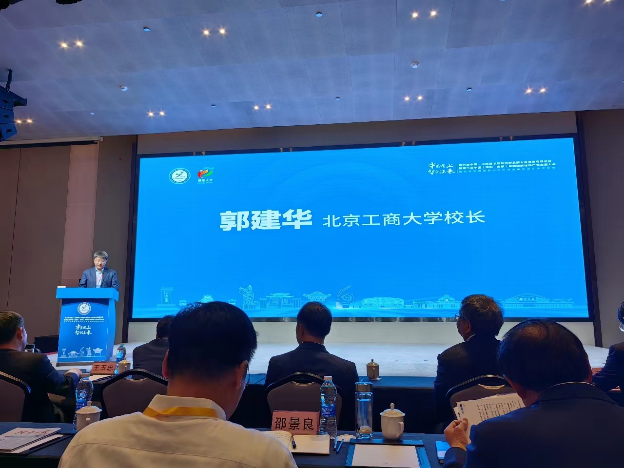 郭建华在大会致辞时介绍了我校的基本情况、优势专业和特色研究方向等。他指出,此次我校与濮阳市委、市政府共同举办第三届中国(濮阳·南乐)生物降解新材料产业发展大会,发挥我校在食品包装材料、生物基与生物降解材料等学科专业优势,与地方政府企业共同搭建交流平台,诚邀各位领导、专家和同行共同探讨生物降解行业面临的共性问题,为行业发展把脉开方,为共同应对塑料污染提供解决方案,为进一步推进生态文明建设、推动高质量发展贡献智慧和力量。希望大会的召开,有助于生物降解材料产业快速有序、健康可持续发展,有助于美丽河南、美丽中国建设。