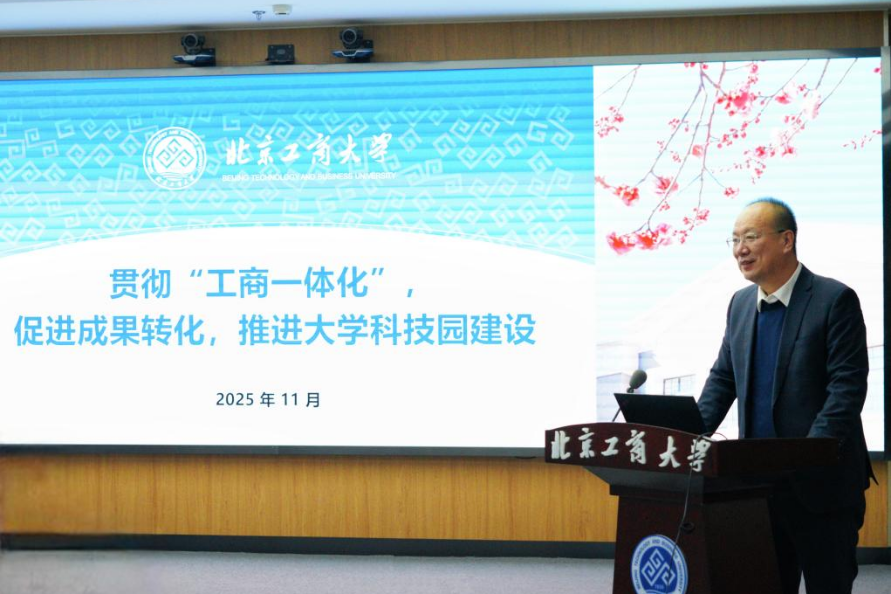 王煜代表甘家口街道讲话。他表示,大学科技园的建设是学校与属地街道共同贯彻落实四中全会精神、前瞻谋划“十五五”发展的重要举措,甘家口作为属地街道,将全力支持大学科技园的建设,积极对接财务、知识产权等服务资源,主动对接各类路演、大赛等创新资源,切实发挥好属地的服务保障职能,助力大学科技园高质量发展。甘家口市场所所长王健提出应加强对入孵企业的全链条服务与监管,希望以此为契机,围绕食品药品监测等领域搭建平台,设立专利与标准一站式服务站,推动孵化器资源共建共享。中关村科学城管委会服务体系建设处范凯源从园区定位与申请认定等方面提出建议,为大学科技园下一步的规划与申报工作提供了专业参考。