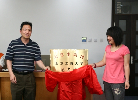 会上,还举行了《大学生周刊》驻我校记者站的揭牌仪式。我校学生记者团不仅参与学校的新闻宣传工作,还将作为《大学生周刊》的特约记者,和首都的部分高校学生记者们共同担负起宣传首都大学生丰富多采校园生活的任务。