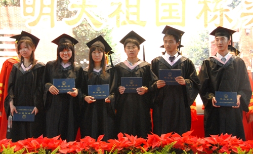 谭向勇、沈愉、李艾伦分别为优秀毕业生、通过硕士研究生入学考试的同学和支边西部地区的同学颁发了毕业证、学位证和荣誉证书。