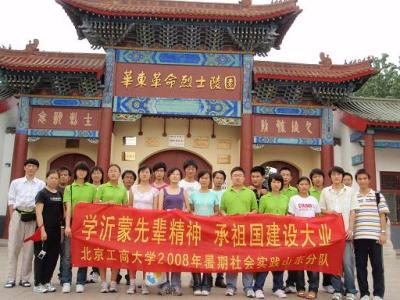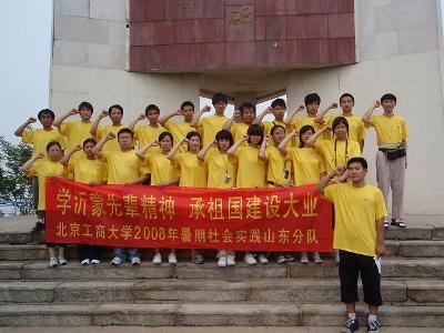 我校此次社会实践山东分队组成人员主要为奥运服务生预备人员以及国家励志奖学金受助学生代表、家庭经济困难学生代表和学生自强社成员代表共22人。根据学校要求,学生资助中心徐红京、石淑艳同志参加并组织了此次社会实践活动。