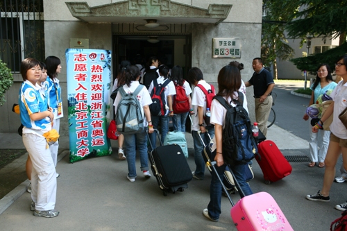 【微笑奥运】卢思锋副书记带队欢迎浙江省志愿者入住我校(图片)