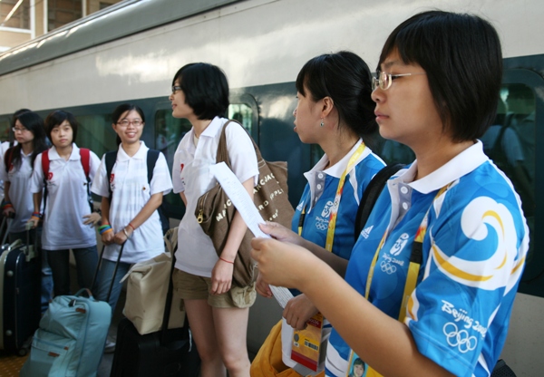 浙江奥运志愿者的相关接待与准备工作得到了我校领导的高度重视和大力支持,团委志愿者骨干在团委的指导下做了大量的细致性的工作,他们为志愿者发放了校园一卡通、金龙卡、志愿者注册卡,为他们制作发放了入住指南,帮助志愿者熟悉周边环境,并将于明天带领志愿者进驻场馆。浙江志愿者的到来得到了我校志愿者的热烈欢迎,他们已经结成了1+1的帮扶关系,以帮助浙江志愿者尽快适应环境,提高服务能力。