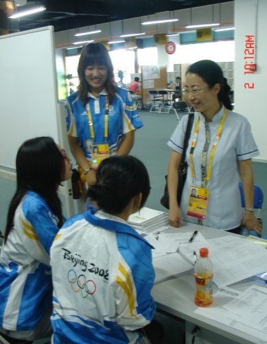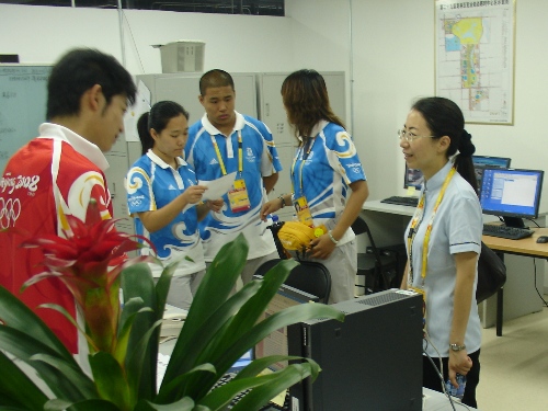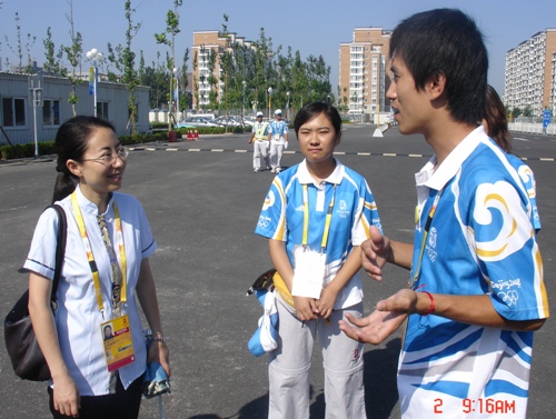 8月2日上午,阳光明媚,万里无云,在这个距离色情片第29届奥运会开幕不到一周的日子里,色情片奥运村(残奥村)临时党支部书记董竹娟、青年委员郭建荣,临时团支部副书记李娜、宣传委员范征,奥运村住宿服务团队带队老师杨超等一行人,在奥运村内看望了我校在此服务的志愿者们。