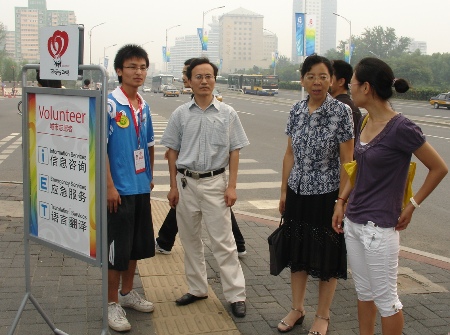 上午9时,田媛一行首先来到中央电视塔服务站点,看望了正在紧张准备活动的志愿者。领导们仔细询问了志愿者的工作情况和日常生活保障等情况,对志愿者们两周来出色的服务给予了充分地肯定,并叮嘱志愿者们要做好防暑降温工作,以保证工作的连续性和持久性。
