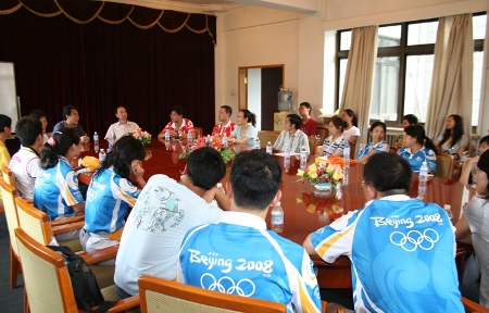 8月7日下午13时30分,学校阜成路校区综合楼三楼东会议室荡漾着一片欢歌与笑语,来自老山自行车场馆、奥运村、国家体育场的我校近30名教师志愿者在这里畅谈着他们的经历和感受。党委副书记卢思锋对教师志愿者们做决战前夕的最后动员和鼓励。工会常务副主席韩宝龙、副主席郭馨梅参加了座谈会,团委书记吕素香主持会议。