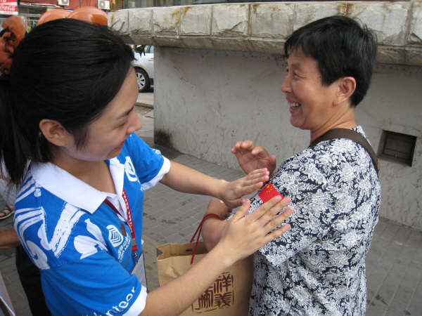 “您好,需要我们为您服务嘛?”在这亲切的问语和灿烂的微笑中,会计学院的城市志愿者们开始了奥运服务的每一天。
