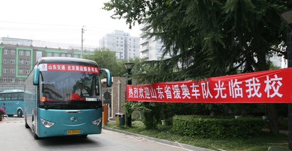 8月9日上午12:00,山东13辆援奥车辆到达我校。至此,山东来我校的14辆援奥车辆全部到达。党委副书记卢思锋、保卫处处长顿劲松、校运输中心主任么品强和团委书记吕素香在学校门口迎接了车队。