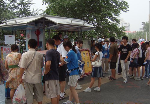 8月12日下午,中央电视塔站点的志愿者们高兴地将海淀区团工委颁发的五星站牌端正地摆在站点正中央。同时,为了增加服务手段,加快奥运信息的更新速度,甘家口街道领导还专门为站点配置了一台崭新的ThinkPad R61e笔记本和CDMA上网卡。新设备增加了志愿者们的服务资料,拓展了志愿者们的服务范围,提高了信息服务的准确性。