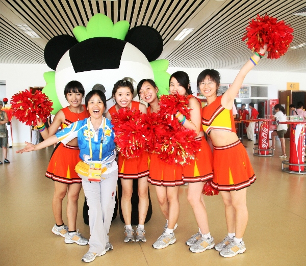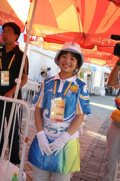在所有业务口中,交通业务口志愿者服务的环境是比较艰苦的。每天最早来到场馆的志愿者是他们,最晚离开场馆的志愿者也是他们。在户外工作难免会遇到恶劣天气,但是尽管现在烈日炎炎,在遮阳伞下,我们看到的依然是三张热情的笑脸。也许这就是志愿者最可爱的地方吧,也许没有空调,但是他们有微笑;也许看不到比赛,但是通过他们的服务他们能让比赛进行得更顺利。