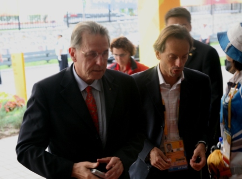 8月16日,奥运会自行车场地赛开赛第二天,国际奥委会主席雅克·罗格,中共中央政治局常委、全国政协主席贾庆林以及来自IOC的国际奥委会委员雷纳尔多·冈萨雷斯·洛佩斯来到老山自行车场馆观看男子记分赛,男子4000米个人追逐赛以及男子凯林赛。我校志愿者激情澎湃、热情服务给贵宾和观众留下了深刻印象。