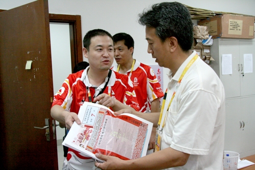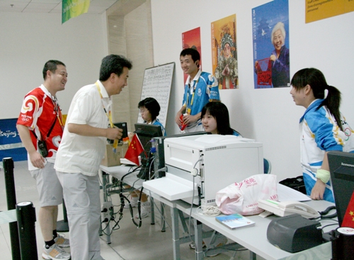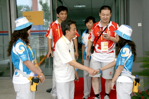 在老山自行车馆志愿者签到处李部长亲切慰问志愿者,在得知签到处的志愿者是所有志愿者中最早上岗,最晚下岗的志愿者时,他亲切地对志愿者说:“辛苦啦!”他们还走访了志愿者服务处,看望了在志愿者服务处工作的志愿者。当他们看到志愿者团队宣传组辛苦工作的成果《第29届奥林匹克运动会——老山自行车场馆群志愿者快报》时,表现出极大兴趣。他们来到志愿者团队运行组工作处,志愿者服务经理吕良介绍到志愿者团队通过早晚例会了解各业务口志愿者的动态,通过巡查慰问以及志愿者之星的评比等激励措施激励志愿者后。李部长细心查看了老山自行车场馆群志愿者信息统计表,他强调对志愿者反映的情况、提出的问题一定要及时反馈解决。