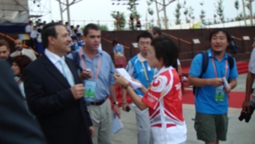 离27日奥运村开村和中国代表团入村的日子越来越近了,我们的准备工作也在不断加快,大家的压力也越来越大,因为谁都知道,27日是个非常重要的日子,开村仪式之后,马上是中国代表团入村的升旗仪式,除了党和国家很多领导人要参加外,有约400名的中外媒体记者要来见证这一时刻。为了使这一天的各项工作顺利运行,我们媒体运行团队作了各种应急预案,以应对可能出现的各种突发事件。而作为ONS记者,在27日还要在第一时间把对这一事件的英文报道发布在Info系统上(Info系统是奥运会期间奥组委向注册媒体提供相关有效信息的平台,信息的采集由ONS负责,因此,ONS也就相当于奥组委的官方通讯社)。这第一仗必须打好。功夫不负有心人,由于我们准备充分,27日那天一切都很顺利,奥运村开村仪式和中国代表团入村仪式分别采写成两个英语新闻稿件,顺利地发布在Info系统上,甚至我们事先制定的各种应急预案也都没有派上用场。这个开门红并没有让我松口气,因为接下来就是和平友谊墙的启动仪式和其它203个NOC的入村升旗仪式,整个升旗仪式活动一直要持续到8月9日,对这当中每一个NOC的报道都只能做好,每一个采访以及引语的写作都要精准而富有新闻价值。这些不但考验着我的英语新闻的采写技能,也考验着我的新闻职业素养,即我对新闻的策划与建构能力。比如对于那些体育大国代表团,当然会让我兴奋,因为他们有很多可采写的亮点,如美国、俄罗斯,谁都知道他们分别是上届金牌榜上的冠军和季军,其优势项目也有目共睹,其著名运动员的这届表现和期待也是大家关注的焦点,在采访提纲和问题单的设置上也相对容易。但是,体育大国毕竟是少数,在这204个NOC中,有更多的代表团甚至只拥有参赛的资格,却没有夺牌的实力。对于这些NOC,我们是否应该对他们视而不见?我告诉自己,在奥林匹克的旗帜下面,每个参赛代表团都是平等的,既然他们能够在色情片的奥运村里升旗自己国家的国旗,奏响自己的国歌,那么他们就享有同样的吸引外界关注的权利,而这种权利的体现首先落在我们奥组委的ONS记者身上,于是在力量允许的情况下,我会在前一天晚上(经常是深夜)拿到第二天的升旗名单后,把它们分门别类,请志愿者分别去查这些NOC历届奥运会的表现以及其相关资料,如果历史上该NOC奖牌记录为0,那么再查它们的相对优势项目,并据此设置采访问题;如果这个NOC弱到极点,既没有往届奖牌历史,也没有一个优势项目,那么还有最后一个问题可以提问: You have attended several sessions of Games, don’t you wanna get a medal? What event can possibly contribute a medal for you, say, if we can expect? Do you have different feeling when you attend the Games every four years and see your national flag being raised on the flag-raising plaza each time? How about this time? 比如我采访尼加拉瓜的NOC主席,他的回答同样精彩而令我感动:我们为了友谊而来!