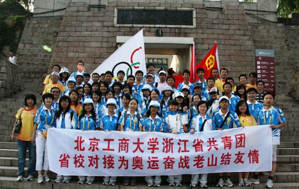 早晨6:30志愿者们坐上了开往八达岭长城的班车。身着黄色志愿者拉拉队服装的我校志愿者与身着志愿者服装的浙江省赛会志愿者为古老的八达岭长城增添了新的亮点。期间,浙江省的赛会志愿者团队组织了重温入团仪式及“苏楠有约”两个活动。在爬长城的过程中大家不断地合影留念。