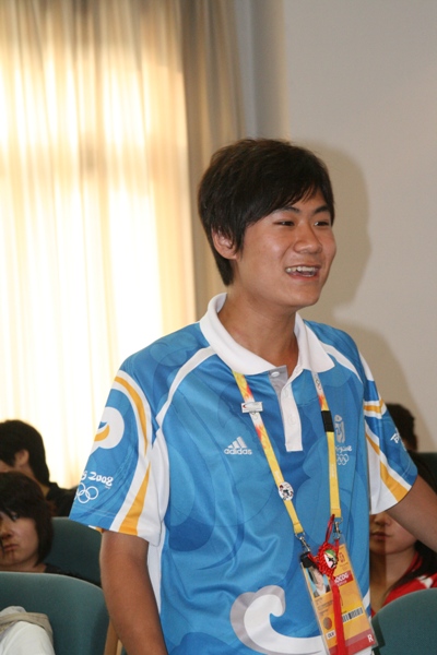 最后,奥运会留下来继续服务残奥会的老志愿者与即将服务残奥会的新志愿者之间的互动交流会。会上,参加过奥运会志愿的同学们纷纷向新志愿者们介绍了自己的一些工作经验与心得,唐杨斌同学说到:“希望大家切记要合理分配热情,做好本质工作,是我们的工作我们要积极努力的去投入,不是我们的工作我们最好不要去参与,以便带来一些不必要的麻烦,其实也就是我们经常提到的免责问题”。孙治萍同学讲到,我们需要的是团结合作精神。讨论精彩,气氛热烈,。
