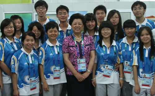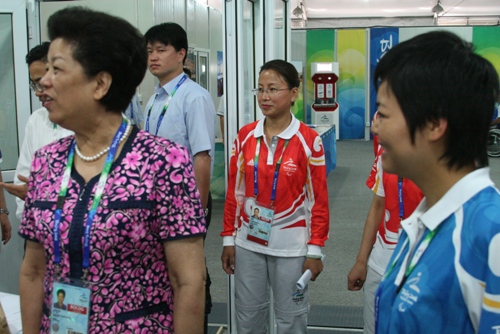9月5日上午,全国人大副委员长、奥运村(残奥村)村长陈至立到残奥村分级中心慰问在这里服务的工作人员和我校在此工作的志愿者们。