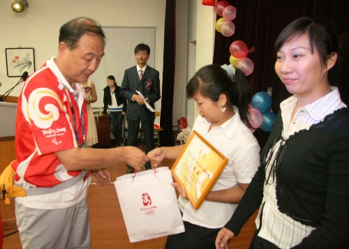 此次比赛得到了我校残奥村住宿服务团队的高度重视,在领队董老师及其他带队老师的悉心指导下,张国梁、史晓萌两位同学不负众望,他们慷慨激昂,挥洒自如,向大家讲述了发生在身边的一个个真实而又感人的故事,打动了在场的每一位观众;再配以精心制作的幻灯片和动听的背景音乐,掀起了阵阵高潮,激起不断的掌声与喝彩声。最终他们以两个全场最高分分获前两名。