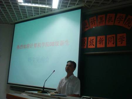 9月13日上午,计算机学院在工二楼101召开了师生见面会,院领导李文正、莫倩、姜同强、翟金英以及团总之书记单紫薇、部分任课教师、全体新生班主任和250余名08级新生出席了大会。大会由党总支副书记兼副院长杜亚辉主持。