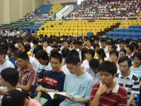 之后,同学们到文体馆参加2008级学生开学典礼。微机专业的马重虽然腿脚不方便,但坚持和新同学们在一起,尽自己的努力参加学校的活动,同学们也很耐心的帮助他,毫无怨言。