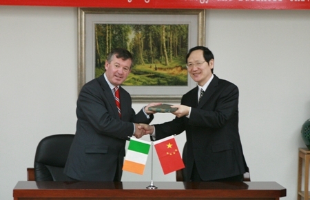 10月13日下午 我校谭向勇校长、孙宝国副校长在良乡行政楼315会议室亲切会见了爱尔兰国考克大学校长迈克尔· 墨菲访问团,宾主双方就两校未来的合作进行了深入的交谈并达成了广泛的共识,两位校长签署了两校合作总协议。此协议翻开了我校与爱尔兰考克大学向全方位,多层次合作交流的新篇章。