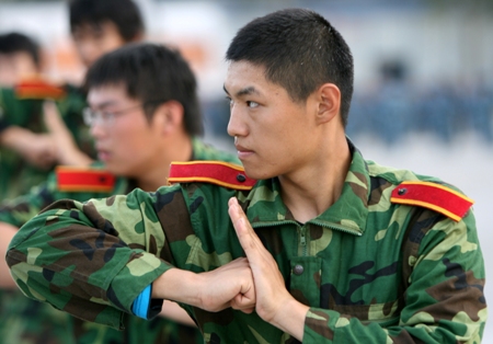 截至10月15日,我校08级新生进行了近两周的军训。训练期间,同学们纪律严明、训练有素;承训部队官兵对同学严格要求、关爱有加;带队老师尽职尽责、敬业奉献;军训团加强军训管理,增强人文关怀。目前,军训团师生正满怀热情刻苦训练,等待阅兵式的到来接受学校对他们军训成绩的检验。