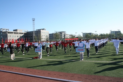 当十几辆大轿车满载参赛的20支队伍浩浩荡荡地开进良乡校区;当参赛队伍身着精心准备的颜色、款式各异服装和运动鞋迈着整齐的步伐走过主席台;当教工们以整齐统一的动作完成表演赛内容时,主席台的校领导和其他评委们露出了满意的微笑;观众席上的学生们看到广大教工如此精神抖擞、步调一致,更是报以热烈的掌声,并油然而生出一股亲切感与发自内心的敬佩。