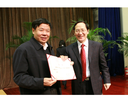 校长谭向勇向朱光耀部长助理颁发兼职教授聘书