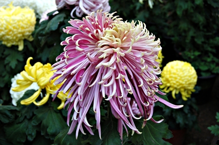 我校在菊花养殖上除了继承传统栽培技艺方法,还注重科学研究,菊花种子曾搭载卫星进行失重试验。积极钻研菊花栽培新方法,成功进行了“有机无土栽培法”试验,同时达到量产化。精心培育的“春江花朝”、“鹫峰霁雪”等6个菊花新品种,已通过市科委的科技成果鉴定,今年正在进行菊花纳米栽培的科技试验工作。通过多年的栽培摸索,目前,在菊花反季节培育上,已经掌握了在5月、9月、元旦开放菊花的技术手段。