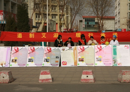 今年世界艾滋病日的主题是“遏制艾滋,履行承诺”,目的是让大家了解艾滋病是能够控制和预防的,防止艾滋病很重要的一条就是每个人都要对自己的行为负责。同时,通过艾滋病日的宣传活动,唤起人们对艾滋病病毒感染者的同情和理解,进一步推进学校预防艾滋病工作的广泛、深入开展。此次活动共发放《防治艾滋病宣传手册》200多本,发放带有防控艾滋病宣传标语、标志的扑克牌、钥匙链、气球、签字笔等600多个,发放避孕套100多个。