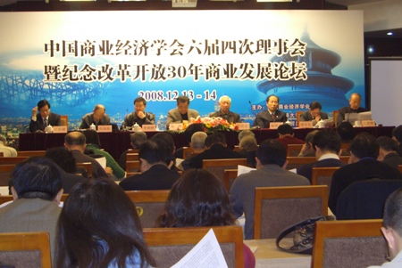 中国社科院财贸经济研究所所长助理荆林波教授就“全球金融海啸对经济的影响”做了主题发言。高涤陈、徐从才、马龙龙等专家学者先后发言,就我国商业改革开放30年中,流通业的改革的发展、农村流通体制、粮食流通体制、品牌发展、商业业态等主题进行了交流。我校洪涛教授作为中国商业经济学会副秘书长就“农产品协议流通、流通产业的理论问题”作了大会发言。