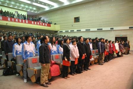 此次表彰大会是计算机与信息工程学院成立后的第一届全院表彰大会,学校和学院领导给予高度重视和大力支持。此次表彰大会的召开向全校展现了一个新学院的新气象、新面貌、新风采,体现了全院师生团结融合、携手共进。随后软件081班田间同学代表全体08级新生发言,表示决心要以先进为榜样,立足新的起点,努力学习,开拓创新,立志成才,共创计算机与信息工程学院新的辉煌。