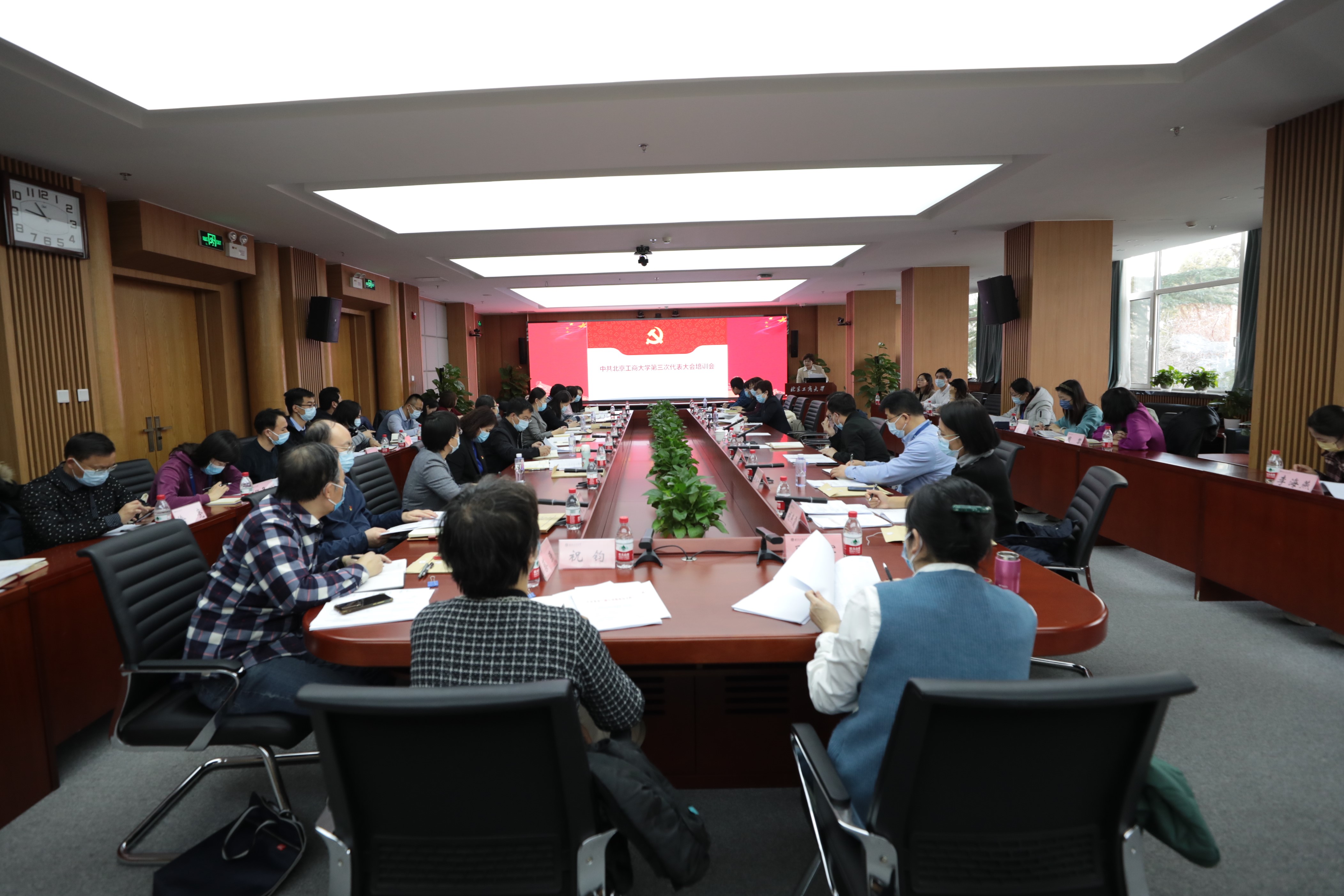 黄先开作动员部署讲话。他指出,召开第三次党代会是学校党内政治生活中的一件大事。开好党代会,选出带领全校师生员工朝着“双一流”和高水平研究型大学目标奋进的“两委”集体,对学校发展至关重要。开好党代会,也是学校党委作为市委下属的基层组织履行主体责任、落实好全面从严治党要求的具体体现。他要求,必须认真对照工作标准和目标任务,在前期稳妥推进的基础上,全力以赴、精益求精,做好各项筹备工作,做到“五个到位”,确保第三次党代会顺利召开。一是党的领导落实到位。要旗帜鲜明把党的全面领导贯穿始终,组织各级党组织和广大党员积极有序参与,高质量完成各项工作。二是重点任务推进到位。要进一步明确职责,把握好时间节点和工作节奏,统筹推进继续修改党代会报告、做好党代会代表选举等各项筹备事宜。三是政策纪律执行到位。要加强业务辅导,开展工作培训,确保代表选举和两委委员选举各环节工作严谨细致、规范操作;要牢牢把住政治标准这个硬杠杠,统筹把好政治关、廉洁关、结构关和纪律关,严肃政治纪律、组织纪律和选举纪律,严格落实中央、市委“十个严禁”“四个不准”要求,确保全过程风清气正。四是宣传教育引领到位。要注重加强宣传教育和舆论引导,通过报道广大党组织和党员喜迎党代会的各类活动,展示近年来学校事业发展成就和党内先进事迹等方式,切实为换届营造良好氛围。同时要教育引导党员和代表正确行使民主权利,保证选举工作平稳有序。五是两个责任履行到位。各二级党组织要切实履行主体责任,书记要带头履行第一责任人责任,明确职责任务,精心组织实施,以辛勤工作、细致安排、严谨作风,统筹抓好党代会和本单位事业改革发展稳定等各项工作。黄先开表示,党代会筹备工作是今年学校一项重大的政治任务,希望各单位严格贯彻执行学校党委部署要求,强化政治责任感和历史使命感,把筹备工作筹划得更精细、准备得更扎实,引领带动全校师生员工以实际行动和优异成绩迎接学校第三次党代会胜利召开。
