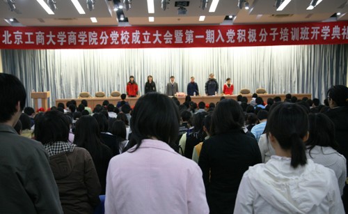 在商学院分党校成立大会上,商学院党总支书记、商学院分党校校长庞毅同志对全体参训学员进行了动员,他希望参训学员珍惜党校学习机会,在商学院分党校中通过系统学习马克思列宁主义、毛泽东思想、邓小平理论、三个代表重要思想和科学发展观等知识,加深对中国共产党的了解,树立为共产主义奋斗终身的理想。他要求学员在分党校学习期间自觉遵守各项规定,并希望学员们通过分党校的学习在理论水平上,在思想认识上有所进步。