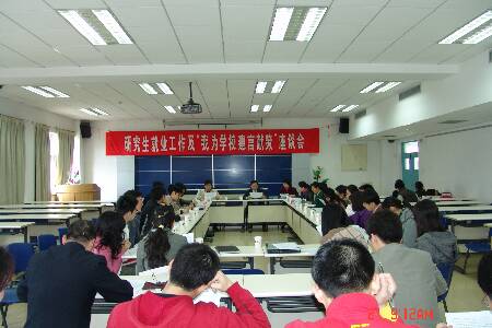 熊慧首先介绍了目前我校研究生的基本概况和研究生就业工作情况。近期研究生部围绕毕业生工作开展了一系列活动:毕业生就业动员大会、毕业生就业信息大搜索行动、针对硕士研究生的企业专场招聘会、就业指导讲座、毕业生谈话、毕业生就业档案采集等工作。她通报了目前09届毕业生的就业情况,截止到3月26日的统计数据显示,2009届毕业生已签约的占23%,但有近一半毕业生的没有明确的工作意向,就业形势依然不容乐观。